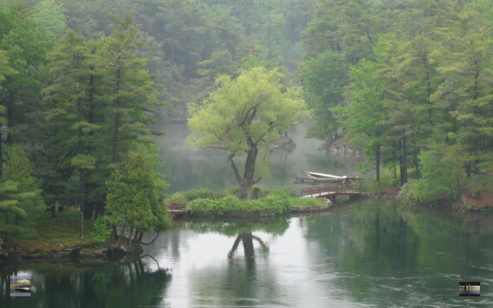 A Happy New Year to All: Having spent almost fifty years living across from the January "mystery picture, there is no doubt that this is the small bridge between the second and third island of Trois Isles, on the right and Rabbit Island on the left at the eastern head of what is now know as Benson's Rift. We, as a family, have spent every summer (first renting, then leasing and now living) across from this area since 1963. We became close friends with a former owner of Trois Isles from Rochester and their children and ours grew up as summer friends. Many happy hours have been spent on Trois Isles and many friendships established through spending time there. Since we currently have a winterized home on the north shore of Hill Island at the eastern end of Benson's Rift, we continue to enjoy boating by this wee bridge and kayaking through the narrow passage of swift water between island three and Rabbit Island. These islands were originally all connected to Rabbit Island in the days when both properties were owned by the Benson (of Benson Corn Starch fame) family. Dorothy Benson lived on Trois Isles and wished to have them separated (no doubt for privacy) and so the cut was made at Rabbit Island. the old Benson boat house was originally to the right of the small bridge in this picture but has been gone for many years. But we have many pictures facing north from Hill Island of when it was still there. After half a century of summering (and now some wintering) close to tjis area depicted in the photo, we would not wish to be anywhere else! We have so enjoyed your pictures Ian and look forward each month for the next "mystery" one. We have all of your books, as well. Last month's pictures was, as weel, very familiar to all of us in the area. Taken in winter, it does, in dee,d make a great screen saver. Nora Jean McAdie Toronto and Hill Island